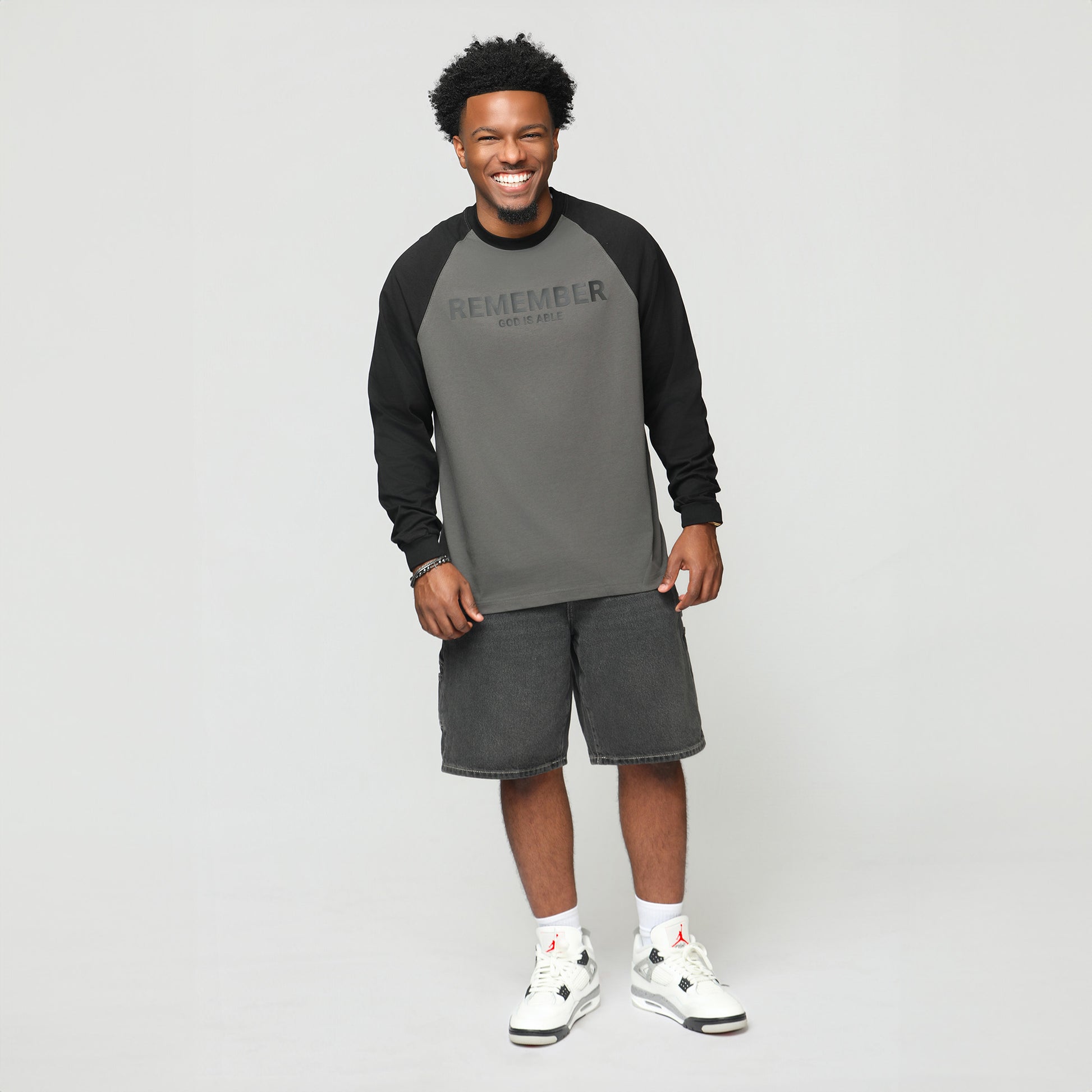 Remember God Is Able Grey & Black Long Sleeve T-shirt